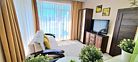 Wi-Fi, холодильник, кондиционер, фен, микроволновая печь, утюг, душевая кабина, водонагреватель, банные полотенца, двуспальная кровать, гладильная доска, стулья, вешалки, чайный набор, стиральная машина, чайник, унитаз, раковина, стол, панорамные окна, телевизор с плоским экраном, мини-кухня, балкон с боковым видом на море, уборка номера, окна от пола до потолка, можно с питомцамиВ номере