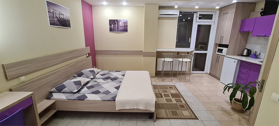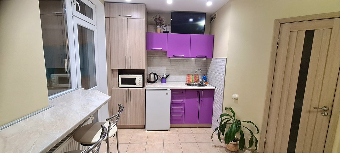 Номер "Фиолетовый" с двуспальной кроватью и мини-кухней