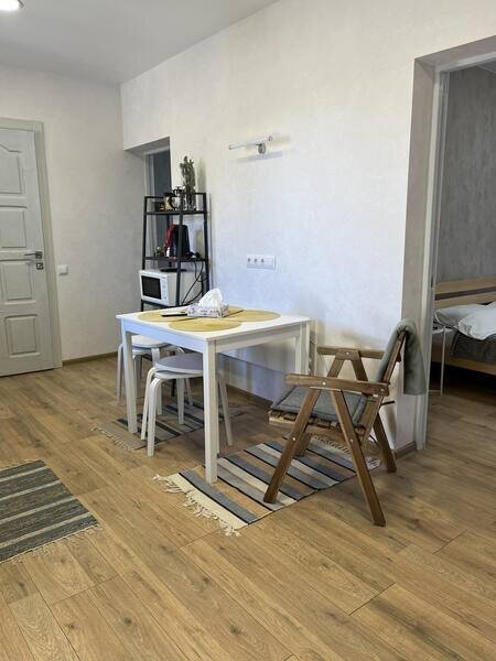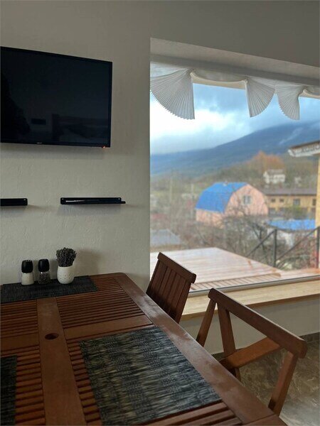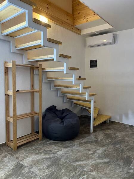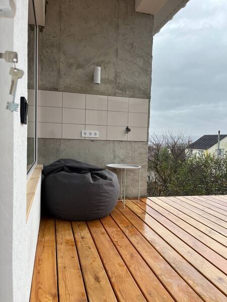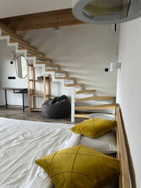 Уютный двухкомнатный эко-номер с гостиной, собственной террасой и видом на байдарский заповедник и горный рельеф. Оптимальный вариант для четверых гостей или тех, кто хочет более просторный номер.