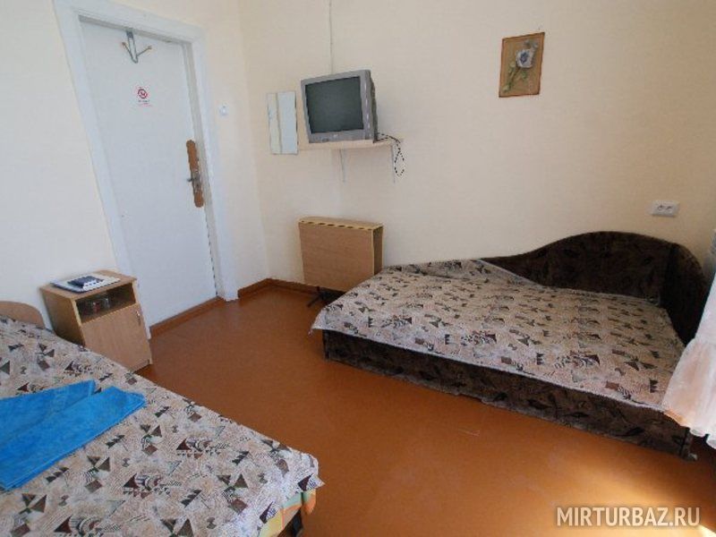 Двухспальный диван, шкаф, зеркало, две тумбочки, ночная лампа, 2 мягких коврика для пляжа. Ванная комната общего пользования на два номера находится в коридоре. В ванной комнате: душ, умывальник, туалет. Холодная и горячая вода круглосуточно.