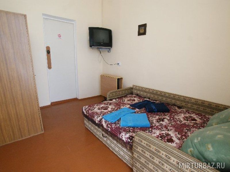 Двухспальная кровать (которая легко раздвигается на две односпальные кровати), софа, телевизор, две тумбочки, зеркало, шкаф с антресолью, стол, стулья, ночная лампа, 3 мягких коврика для пляжа. В ванной комнате уютной гостиницы Севастополя: душ, умывальник, туалет.