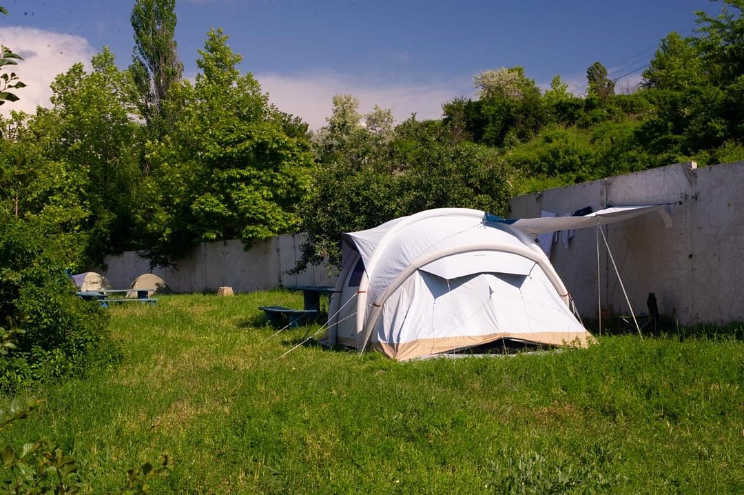 2-местная деревянная палатка без удобств. В домике две кровати типа «топчан», прикроватный столик. Удобства на территории. Общая площадь домика 4 кв.м. Максимальное кол-во мест: 2. Дополнительные места не предусмотрены.Каменный домик 2-х этажный блочного типа (2-й этаж) 2-х местный