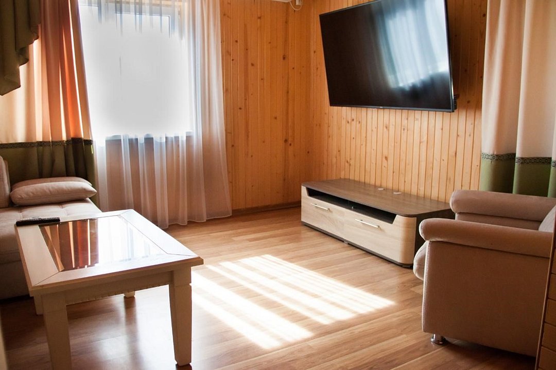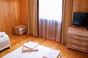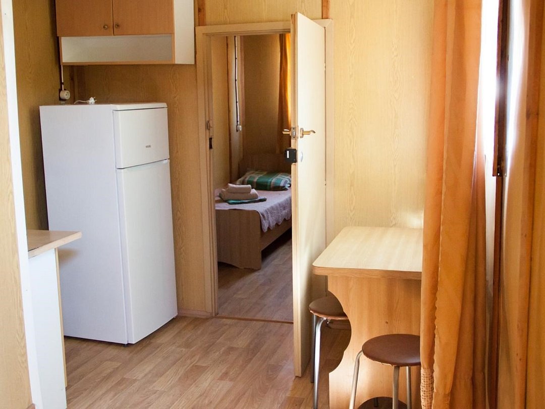 1-комнатный 3-местный номер со всеми удобствами. В номере две отдельные кровати, прикроватные тумбочки, шкаф, холодильник, кондиционер; санузел (туалет, умывальник, душ, бойлер). Номера расположены в 1-этажных деревянных коттеджах. Общая площадь номера 21-23 кв.м. Максимальное кол-во мест:3Услуги и удобства