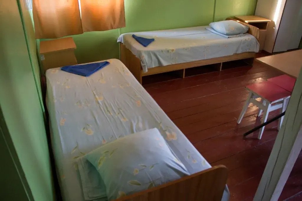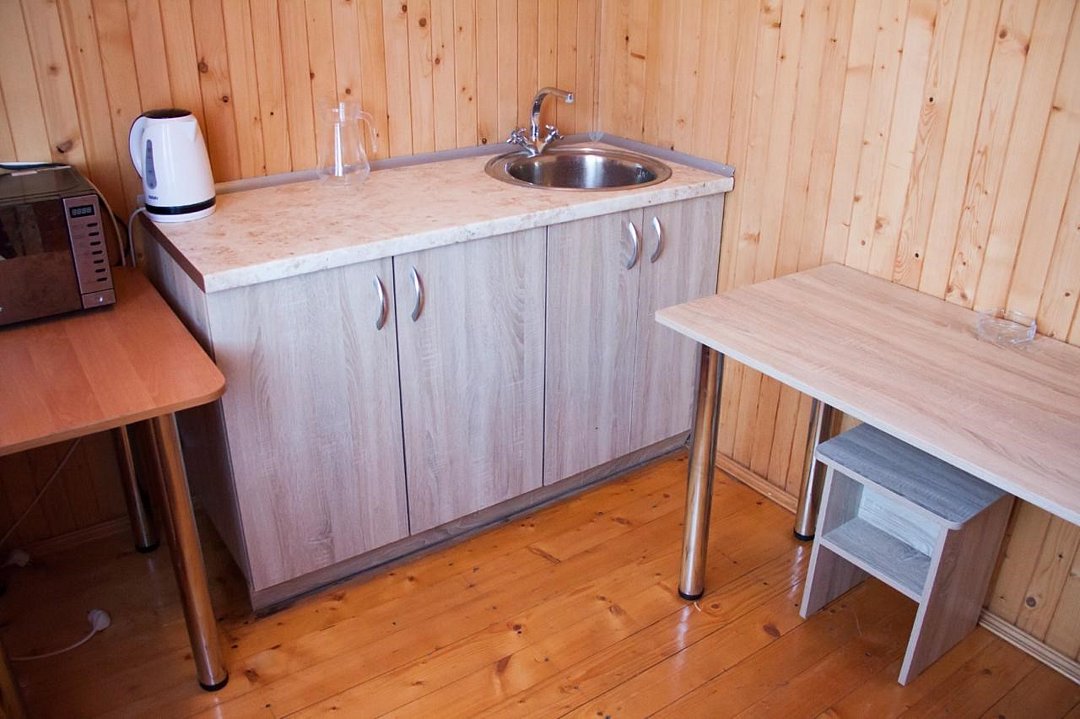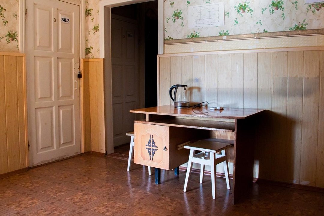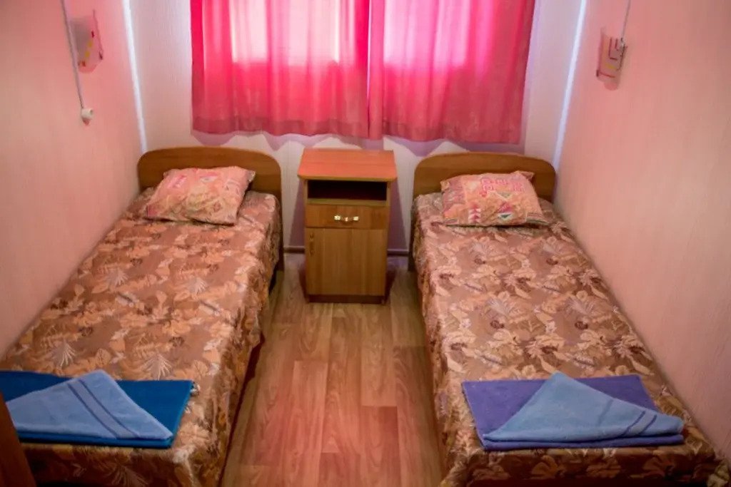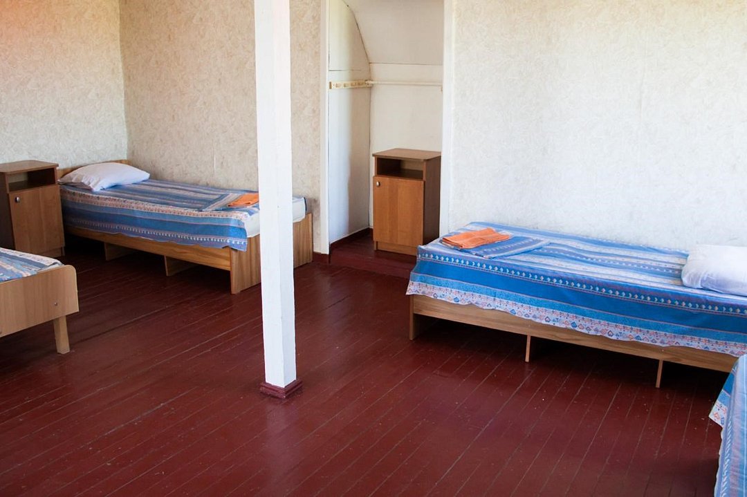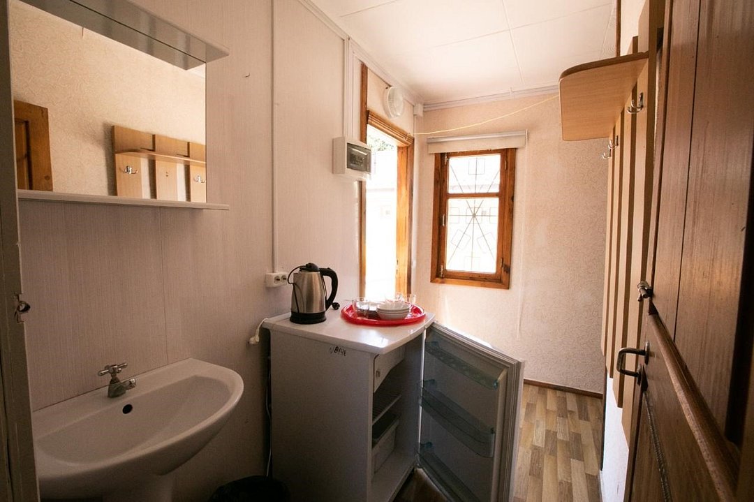 1-комнатный 4-местный номер с частичными удобствами блочного типа. В номере 4 отдельные кровати, холодильник, санузел (туалет, умывальник) . Номера расположены в 2-этажных деревянных коттеджах на 2 этаже. Общая площадь номера 30 кв.м. Максимальное кол-во мест: 4. Есть возможность установки 1 дополнительного места (доп. плата).Услуги и удобства