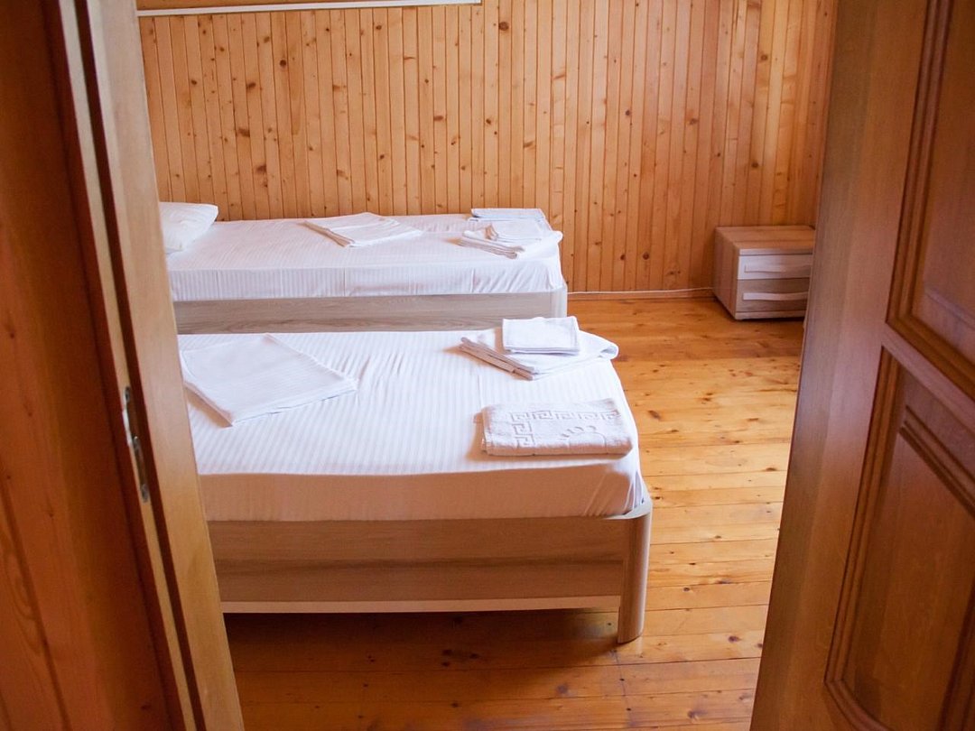 2-3-4-местные номера блочного типа с частичными удобствами. В номерах раздельные кровати, прикроватные тумбочки, шкафы. Санузел (туалет, умывальник, душ, бойлер) – общий на 5 номеров. Номера расположены в каменном коттедже на 2 этаже. Общая площадь номера 11-14 кв.м.Услуги и удобства