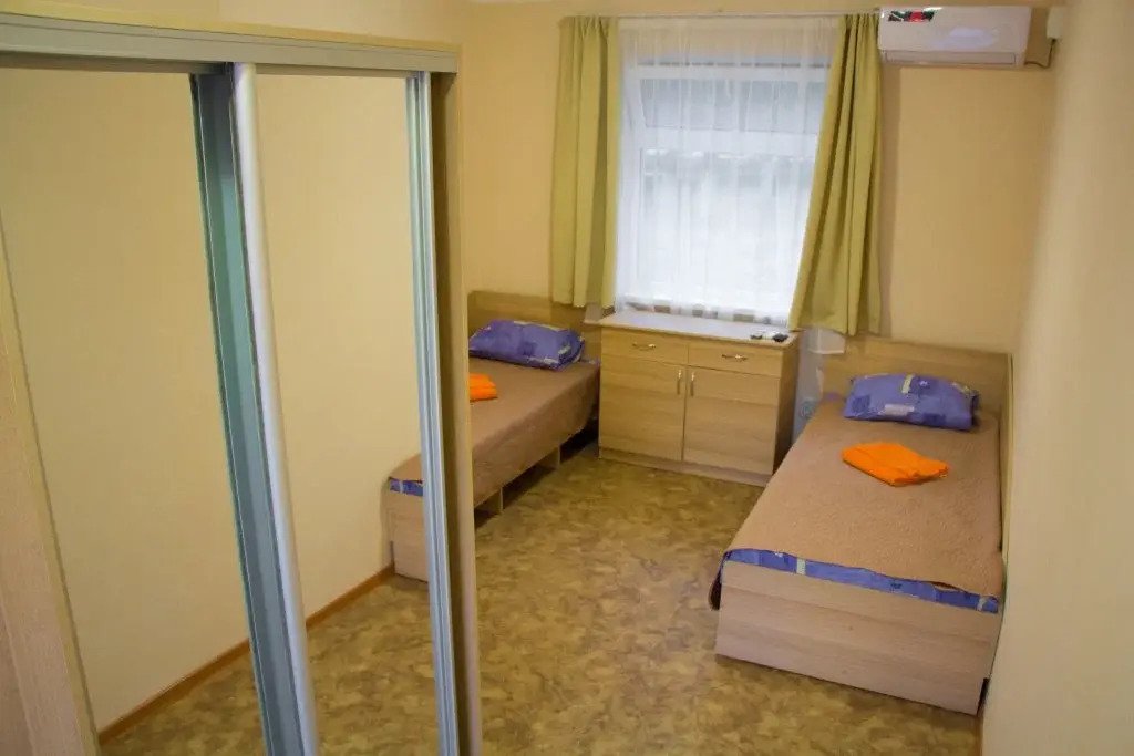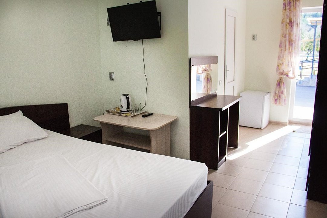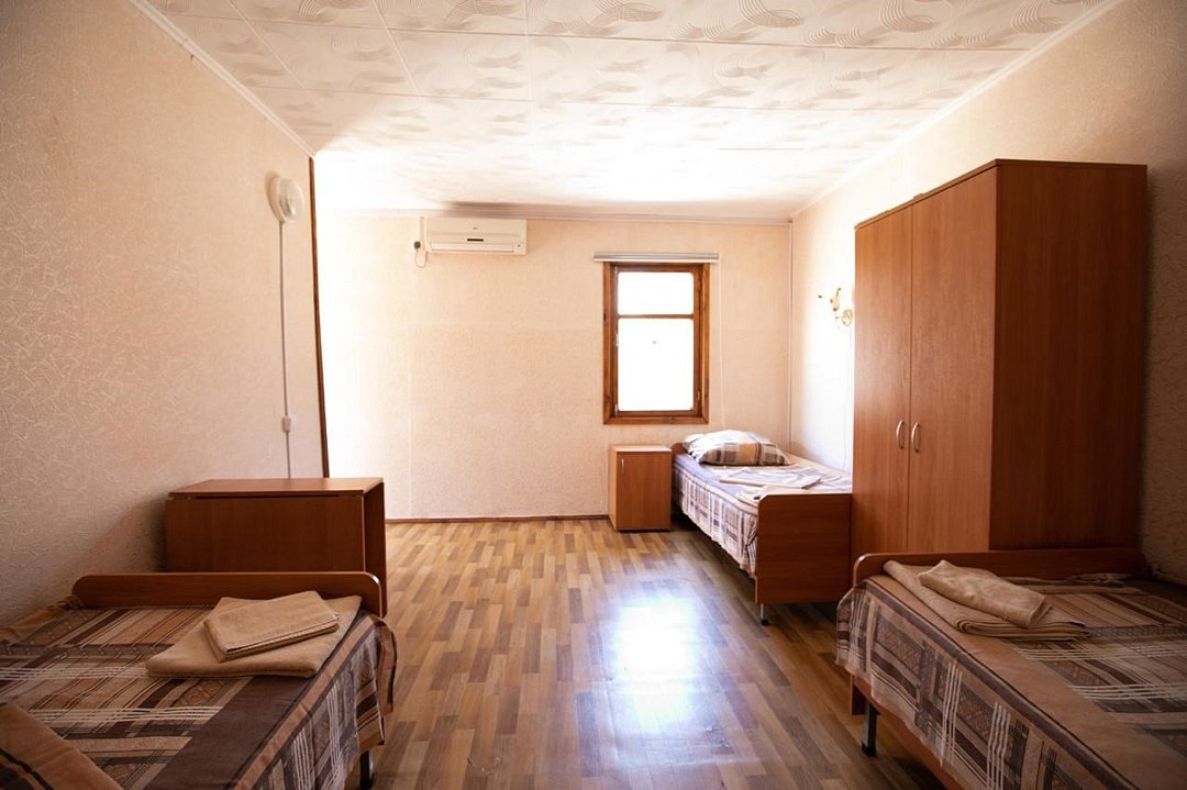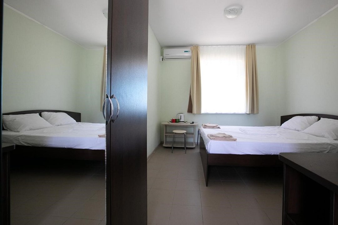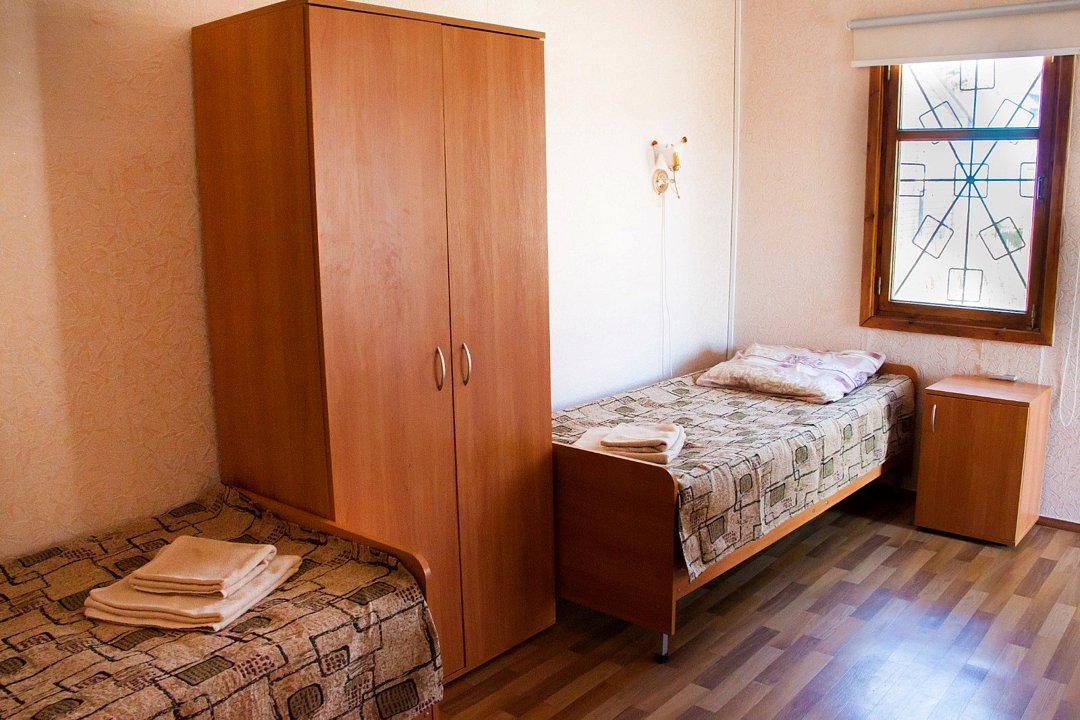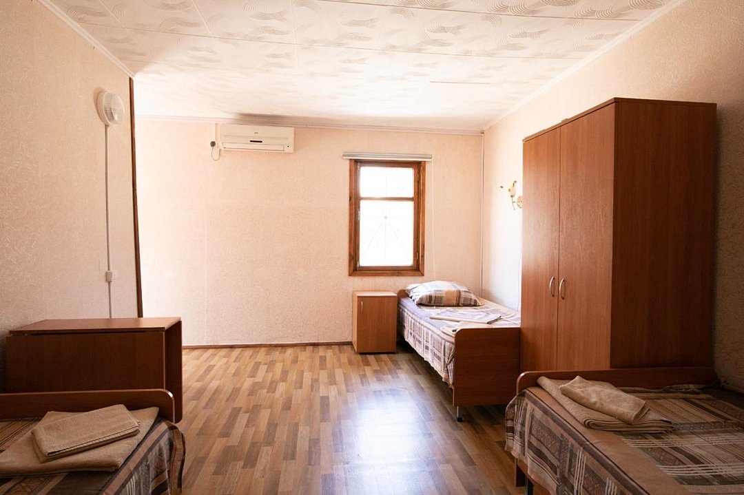 2-3-4-местные номера блочного типа с частичными удобствами. В номерах раздельные кровати, прикроватные тумбочки, шкафы, кондиционеры. Телевизор, холодильник, санузел (туалет, умывальник, душ, бойлер) – общий на 5 номеров. Номера расположены в каменном коттедже на 2 этаже. Общая площадь номера 11-14 кв.м.Услуги и удобства