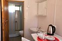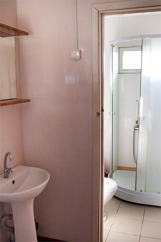 душевая кабина, две односпальные кровати, тумбы, шкаф для одежды, унитаз, отдельный вход в номер, стаканы, туалет, без видаВ домике