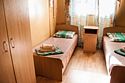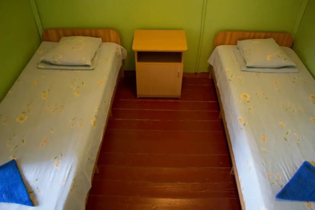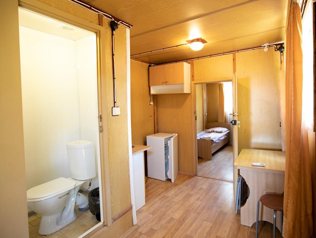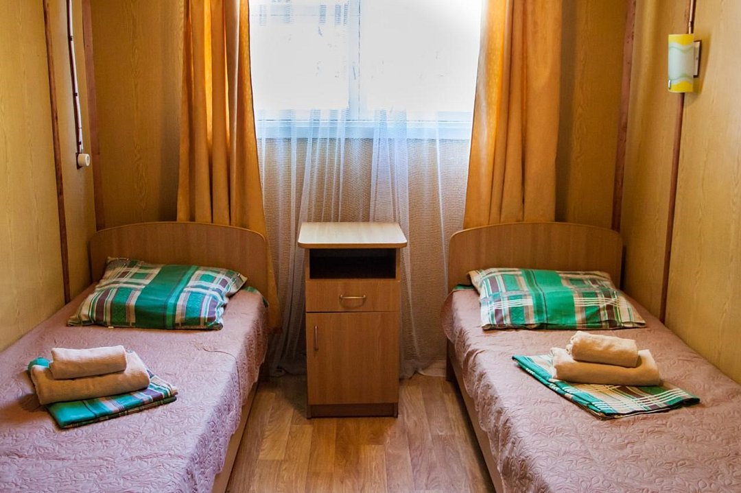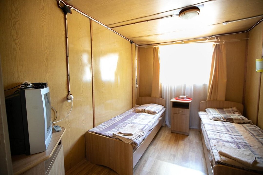 1-комнатный 2-местный номер с частичными удобствами блочного типа. В номере 2 отдельные кровати, шкаф и санузел (туалет, умывальник) – общий на 2 номера. Номера расположены в 2-этажных деревянных коттеджах на 1 этаже. Общая площадь номера 15 кв.м. Максимальное кол-во мест: 2. Есть возможность установки 1 дополнительного места (доп. плата).Услуги и удобства