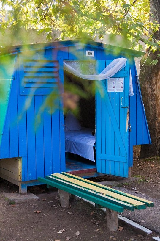1-комнатный 2-местный номер с удобствами на блок. В номере две отдельные кровати, без телевизора; холодильник, кондиционер и санузел на два номера (туалет, умывальник, душ, бойлер). Бесплатный Wi-Fi. Номера расположены в 1-этажных коттеджах. Общая площадь номера 14 кв.м. Максимальное кол-во мест: 2.Услуги и удобства