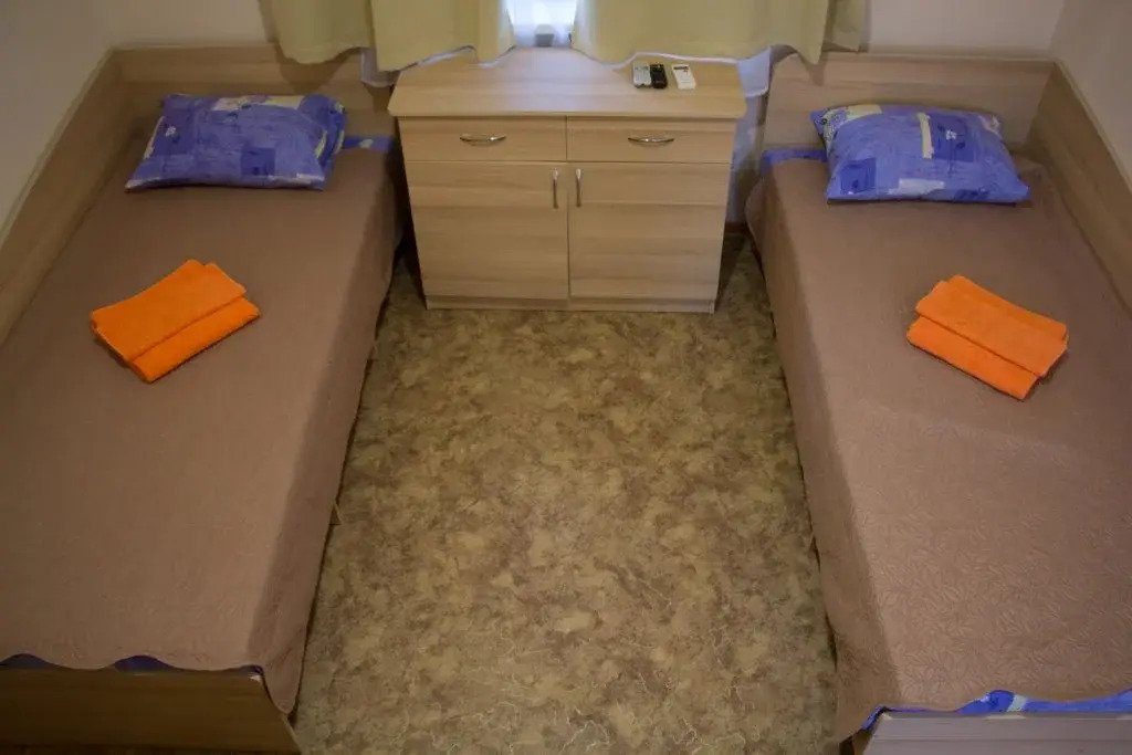 1-комнатный 2--местный номер со всеми удобствами. В номере две отдельные кровати, прикроватные тумбочки, шкаф, телевизор, холодильник, кондиционер; санузел (туалет, умывальник, душ, бойлер). Номера расположены в 1-этажных деревянных коттеджах. Общая площадь номера 21кв.м Максимальное кол-во мест: 2, возможна установка дополнительного места (доп. плата).Услуги и удобства
