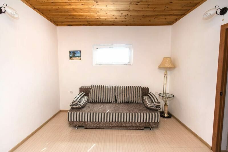 В номере: одна 2-спальная кровать с ортопедическим матрацем, раскладывающийся диван, 2 тумбочки со светильниками, холодильник, электрочайник и набор необходимой посуды (тарелки, стаканы, ложки, вилки), плазменный ТВ, своя лоджия со столом и стульями, санузел. На территории есть WI-FI.