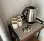 В номере: 2 отдельные деревянные кровати, которые при желании можно сдвинуть, 2 тумбочки со светильниками, шкаф, телевизор, холодильник, электрочайник и набор необходимой посуды (тарелки, стаканы, ложки, вилки). На территории есть WI-FI.