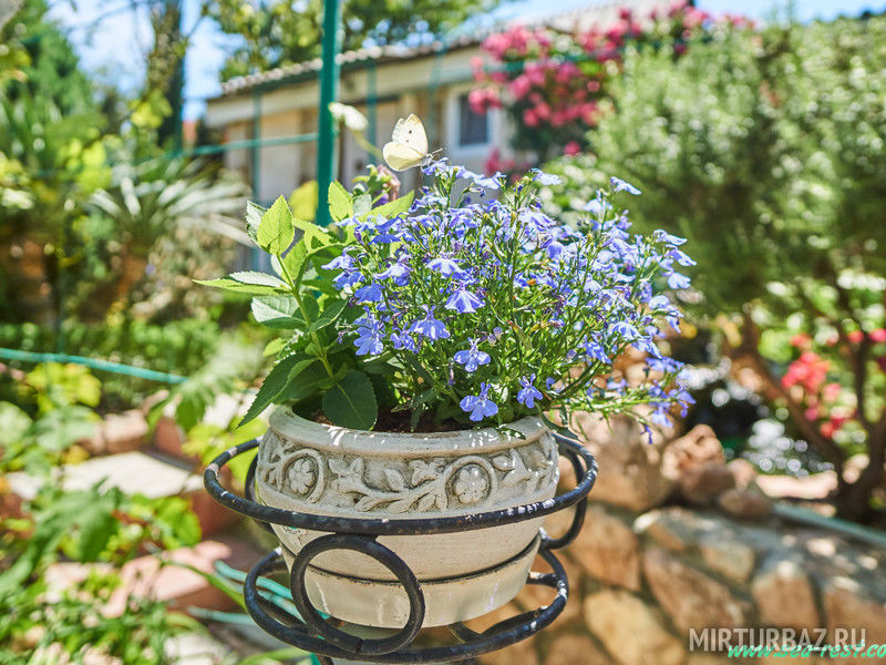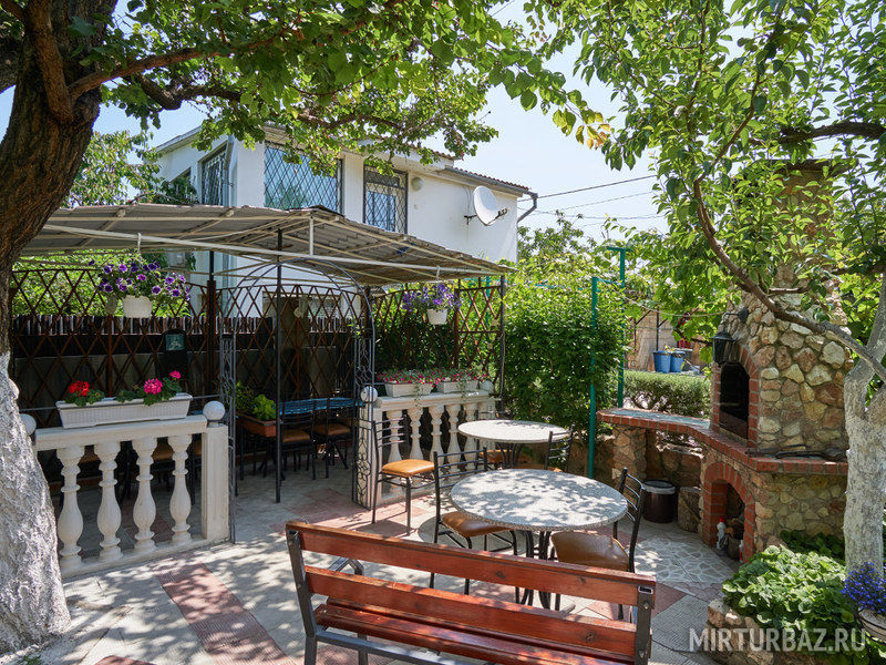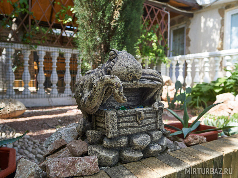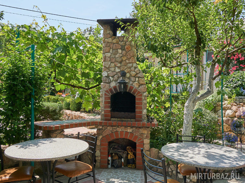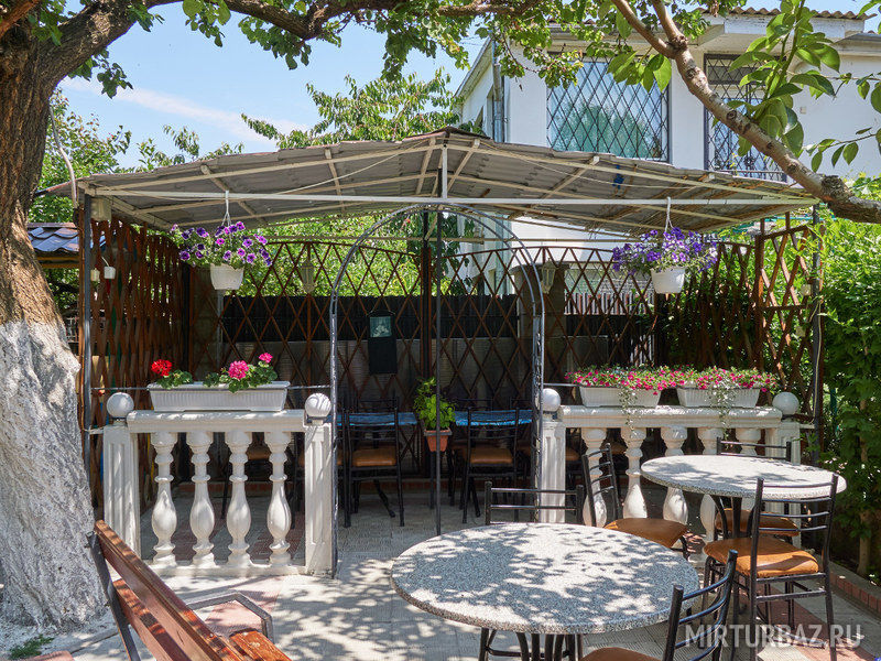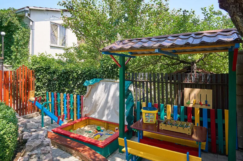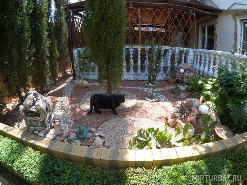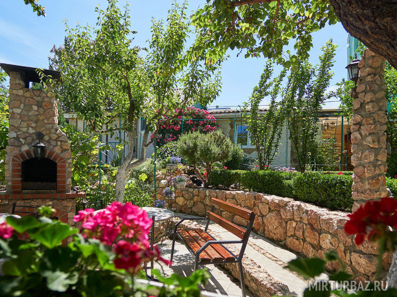 Просторный, красиво оформленный двор, цветущий сад, со стрижеными газонами, детский уголок с песочницей для самых маленьких гостей.