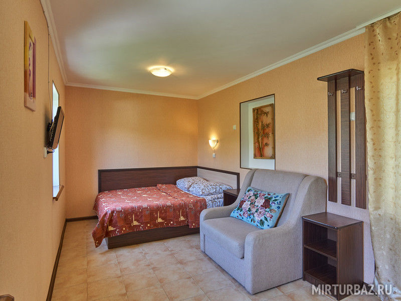 Домик состоит из двух комнат, имеющих индивидуальный вход. В одной из комнат - 2-х спальная кровать, в другой – 2-х спальная кровать и односпальный диванчик.