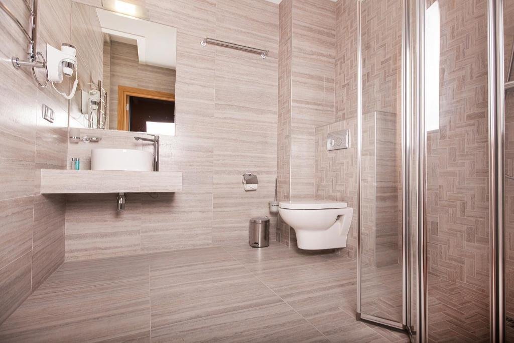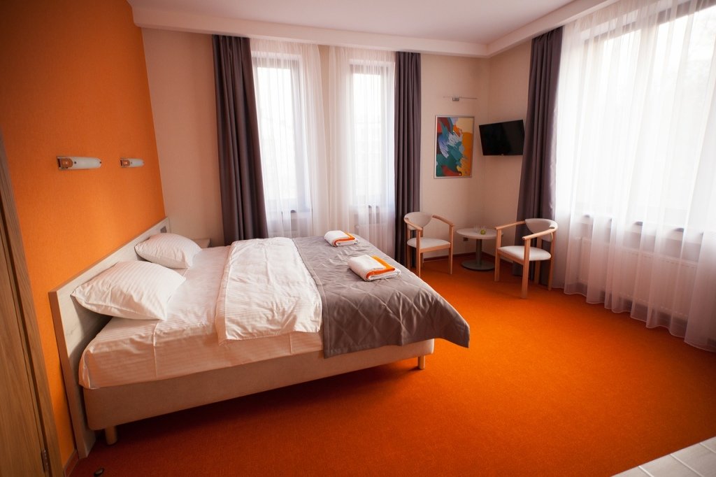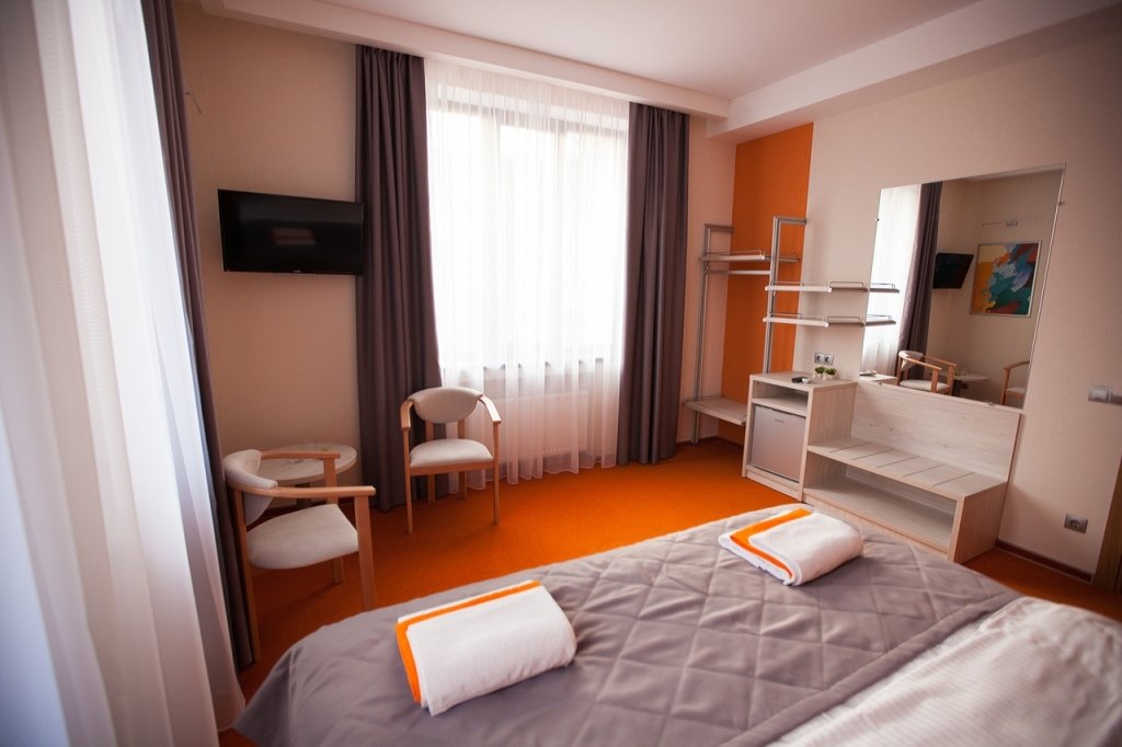 В номере вы найдёте телевизор, мини-бар и халат. Оснащение зависит от выбранной категории номера.