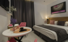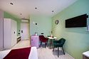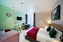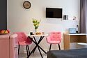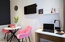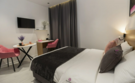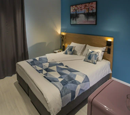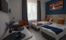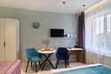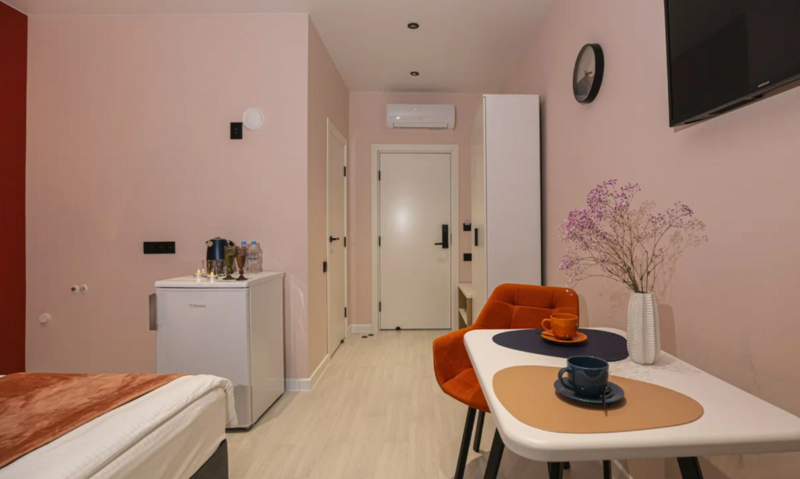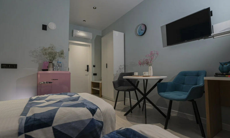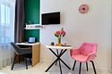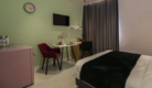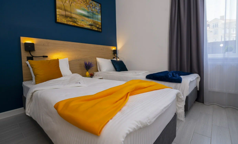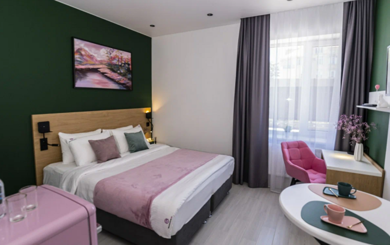 К размещению представлены двухместные номера повышенного комфорта. Среди удобств кровать с ортопедическим матрасом, кондиционер, кабельное телевидение, быстрый Wi-Fi и рабочий стол. Ванная комната включает душ, фен, комплект полотенец, средства личной гигиены и стиральную машину.