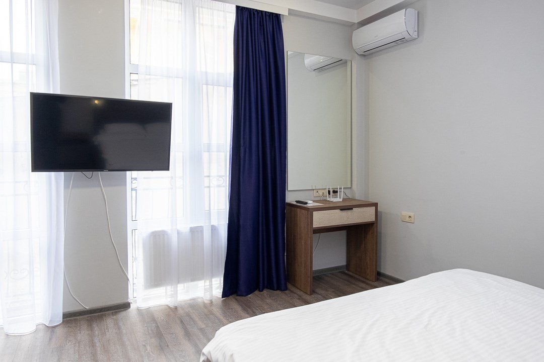 Просторный номер категории Полулюкс отлично подойдет для двоих гостей. Номер комплектуется двуспальной кроватью. В ванной комнате все удобства, ванна или душевая кабина.Услуги и удобства