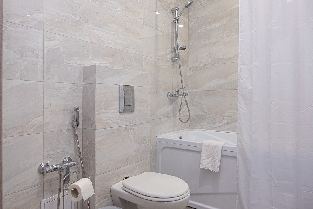 Просторные однокомнатные апартаменты 2022 года постройки, отлично подойдут для 2-4 гостей. В номере двуспальная кровать и диван. Ванна или душевая кабина. Есть кухонная зона с варочной поверхностью, холодильником, микроволновой печью и посудой.Услуги и удобства