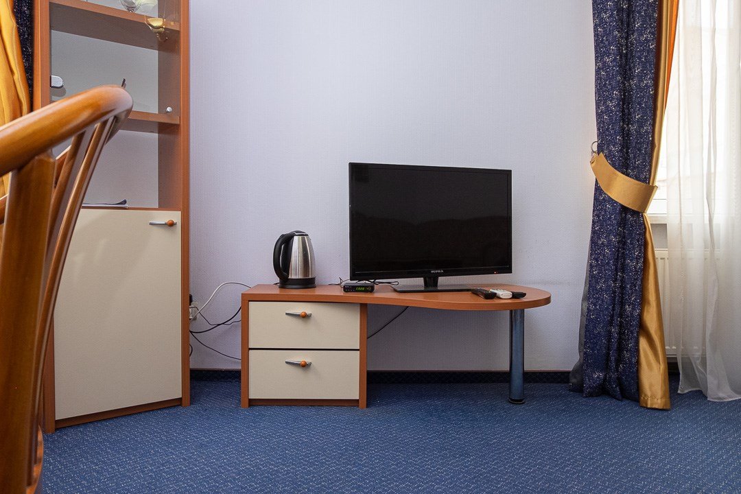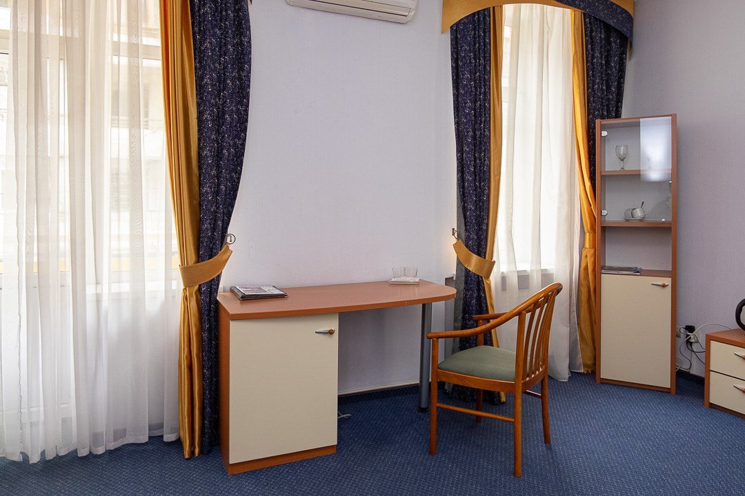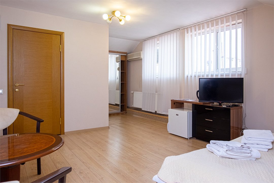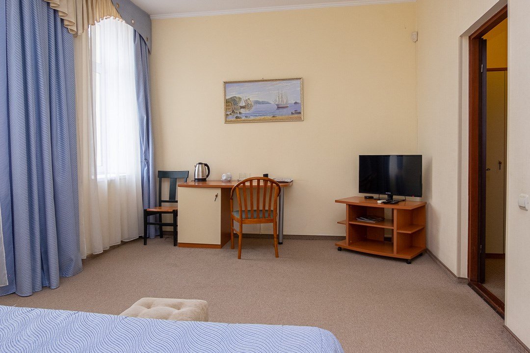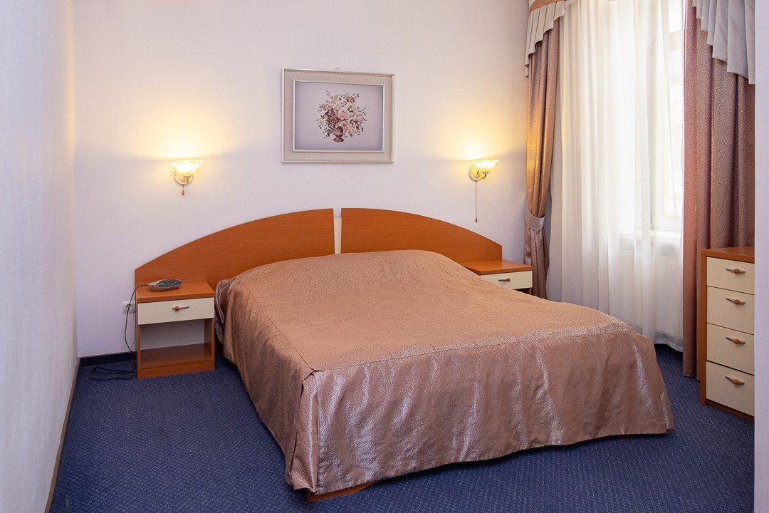 Просторный номер категории Полулюкс Плюс был обновлен в 2020 году и отлично подойдет для двоих гостей. Номер комплектуется двуспальной кроватью. В ванной комнате все удобства, ванна.Услуги и удобства