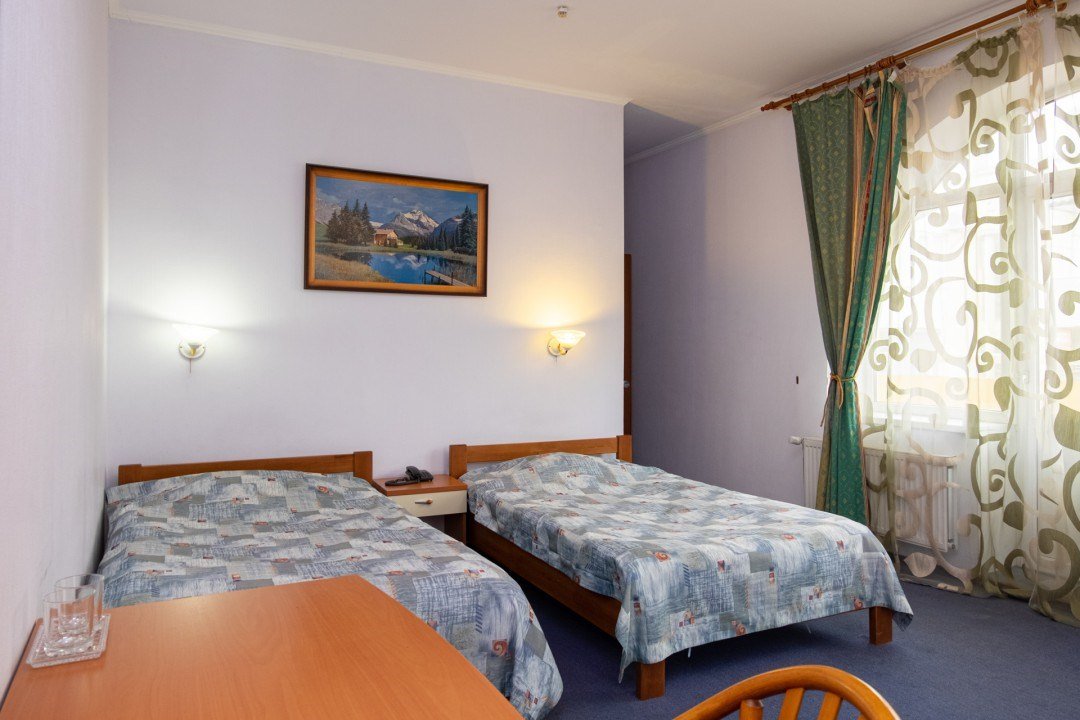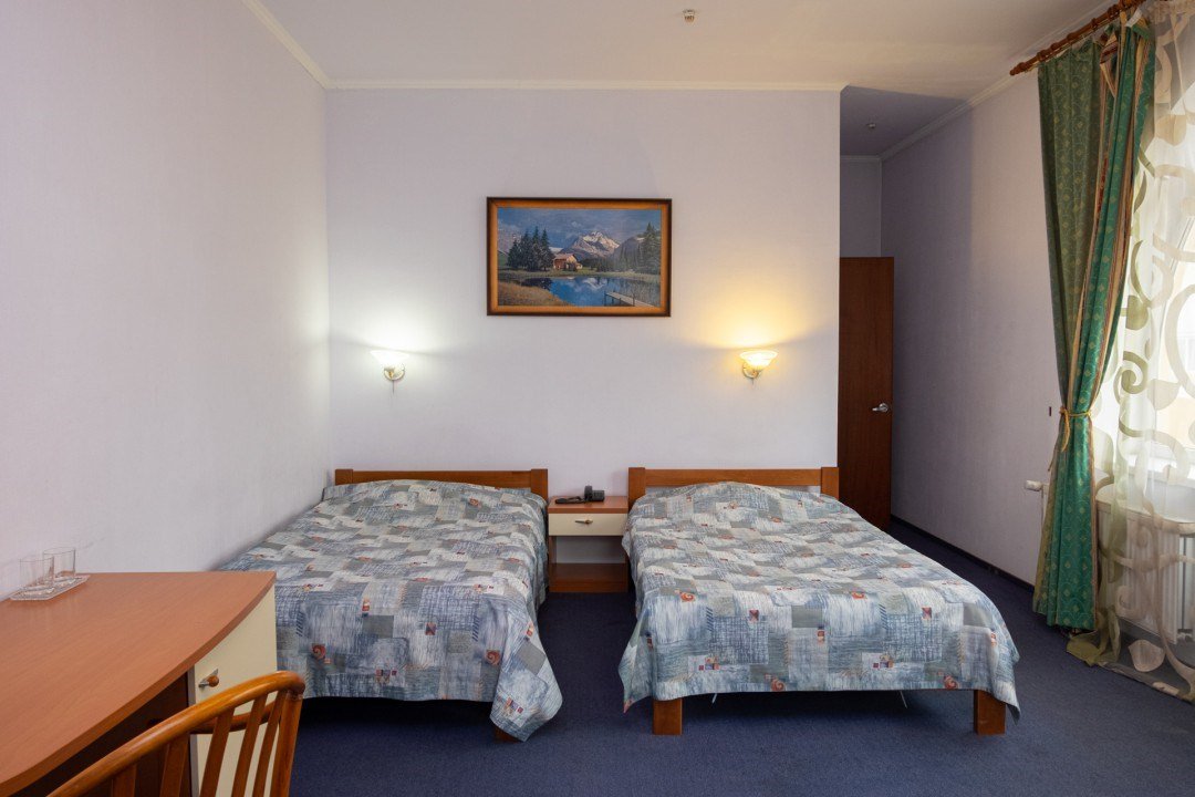 Просторный номер категории Стандарт отлично подойдет для двоих гостей. В номерах двуспальные кровати. В ванной комнате все удобства, ванна или душевая кабина.Услуги и удобства