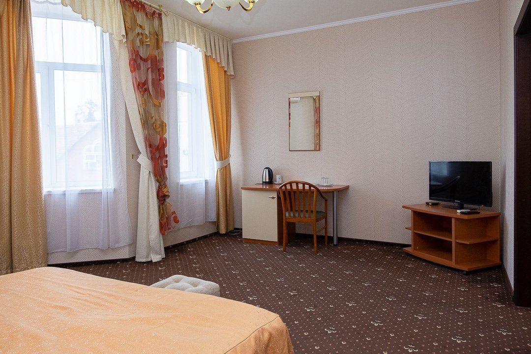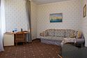 Просторный номер категории Люкс отлично подойдет для двоих гостей. Номер комплектуется двуспальной кроватью. Есть гостиная комната с диваном. В ванной комнате все удобства, ванна.Услуги и удобства