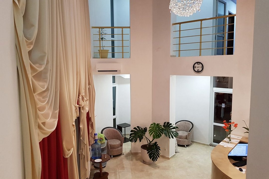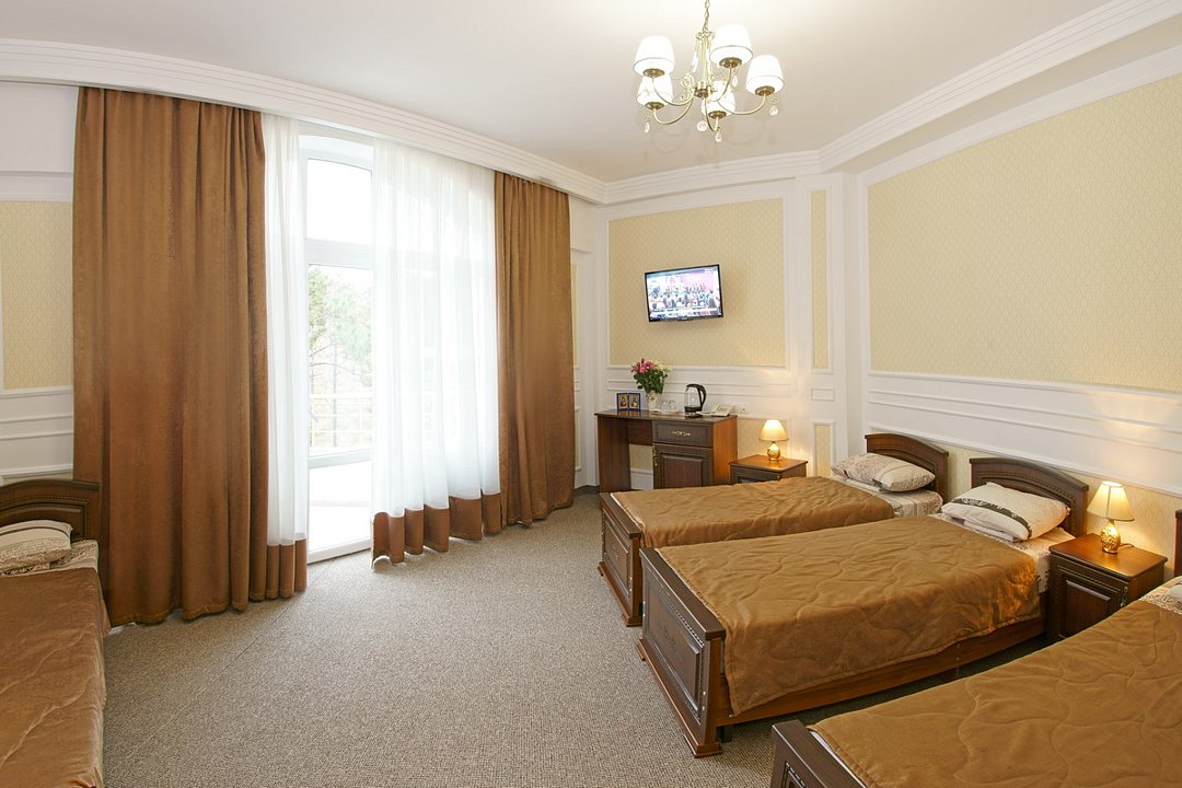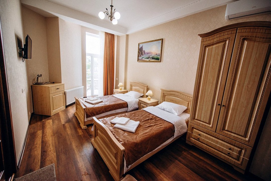 Пансионат занимает благоустроенную закрытую территорию в 200 метрах от моря. В распоряжении гостей номера Double и Twin разных категорий комфорта. Везде предусмотрен индивидуальный санузел с душем и фен, кондиционер, чайник, телевизор-ЖК. Балконы во всех номерах, кроме одного номера - французский балкончик. На территории пансионата работает ресторан, к услугам отдыхающих открытый бассейн с шезлонгами по периметру и сауна. Среди прочих удобств – безлимитный интернет, который позволит всегда быть на связи.