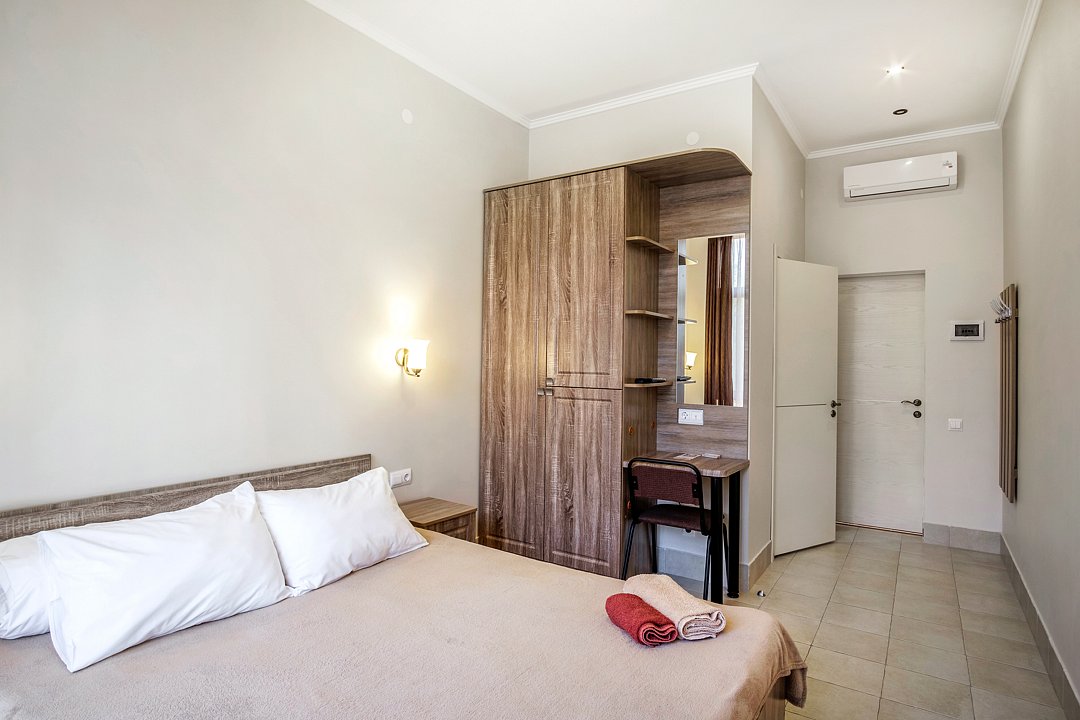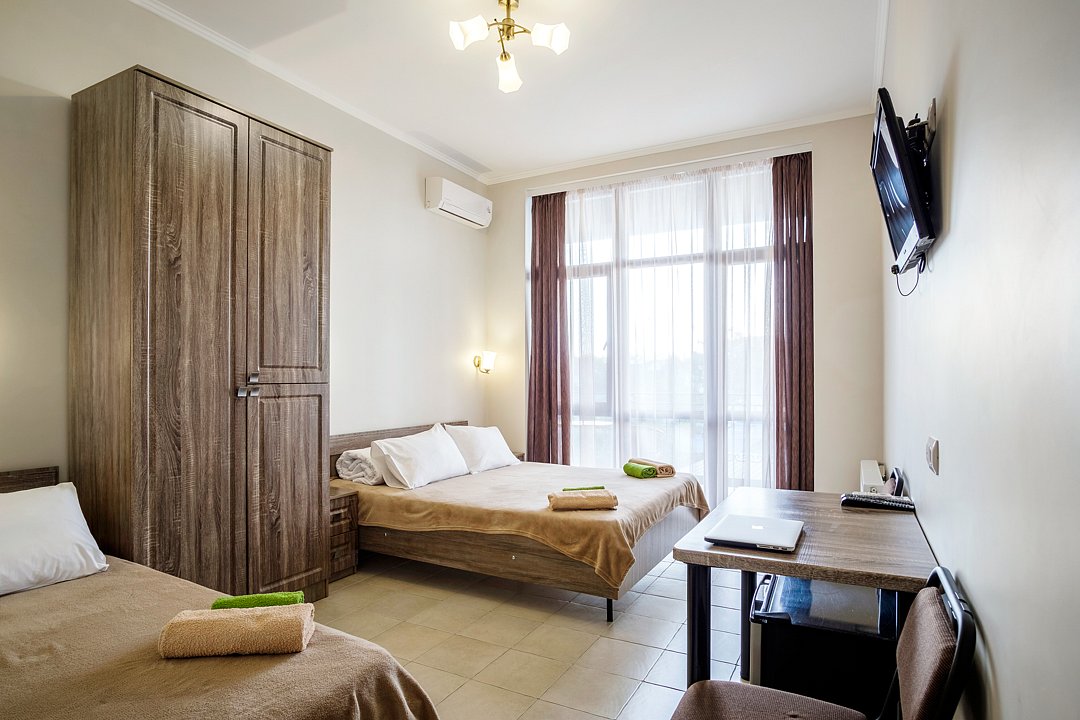 В распоряжении гостей светлые просторные номера, в том числе двухкомнатные апартаменты с террасой. Каждый номер оснащен индивидуальным санузлом с душем, феном и туалетными принадлежностями, в комнатах есть кондиционер, электрочайник, мини-холодильник.