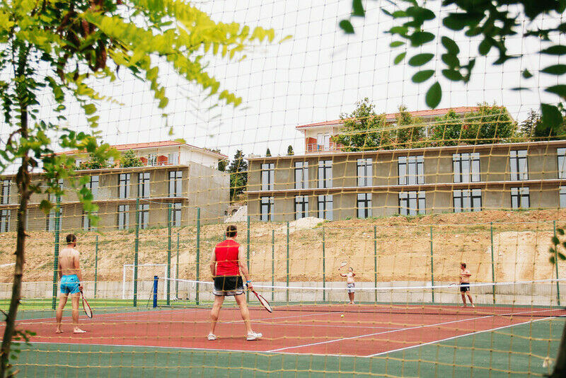 ДостоинстваЕхали семьёй впервые, номер как на фото, всё совпало. Ресепшн вежливая, но немного медлительная. Номер просторный, чистый, уборка регулярно, остались довольны. Побоялись заказывать трёхразовое питание и очень об этом пожалели. Большой выбор блюд, шведский стол. Всем хватало и тарелок и приборов, и еды. Пляж близко, на территории шикарная детская площадка.