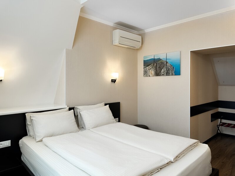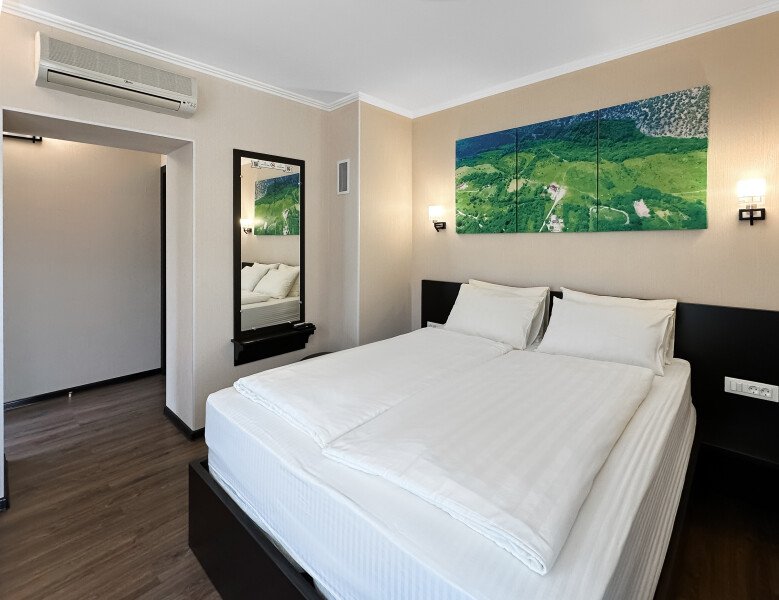 Каждый номер создан для достижения максимального комфорта отдыхающих и оснащён Wi-Fi, плазменным телевизором, удобной мебелью и прочими удобствами. Из окон открывается роскошный вид на горы.При необходимости возможно установить детскую кроватку.