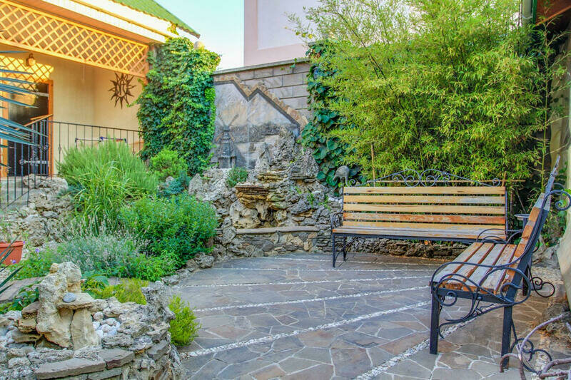 Среди роскошного вечнозелёного парка находится вилла «ОРС». Любители пляжного отдыха оценят её близкое расположение к пляжу Чёрного моря. Шикарная территория с зонами для барбекю, фонтанчиками беседками, скамьями, детскими площадками и батом на фоне цветущих кустарников.