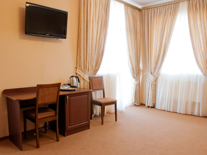 Здание отеля – это четыре этажа с качественно оборудованными апартаментами. Одновременно гостиница вмещает 50-60 человек. Номера предлагаются разных категорий от Стандарта до апартаментов улучшенного типа. В каждой из комнат имеется качественная мебель, техника, душ, отдельный санузел. Климатическая техника и наличие Wi-Fi повышает уровень комфорта.