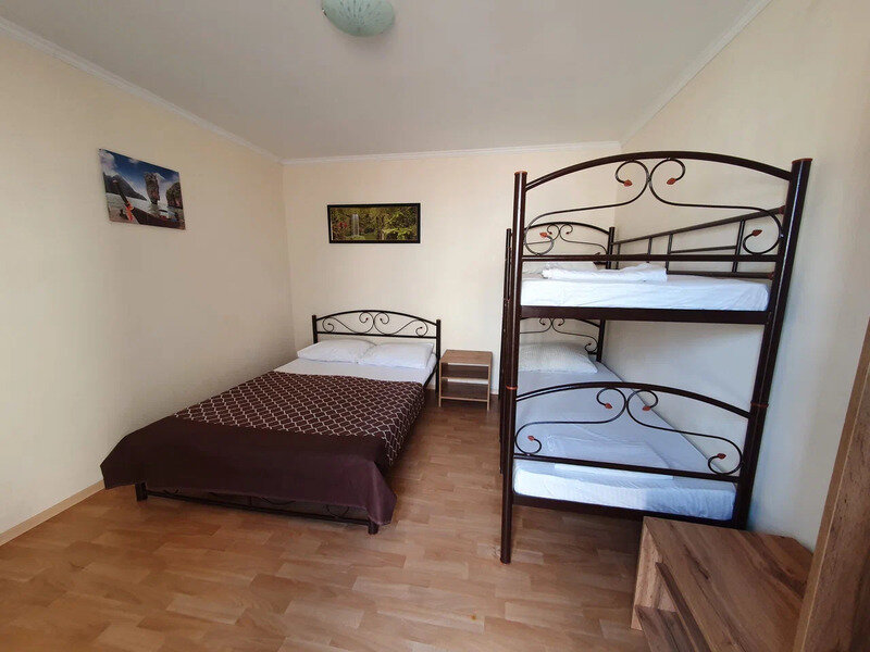 Вас приятно удивит наличие гладильных принадлежностей, просторная общая кухня, сплит-система, сушилка для белья, постоянное наличие холодной и горячей воды, высокоскоростной Wi-Fi и возможность пользования несколькими душевыми и туалетными комнатами.