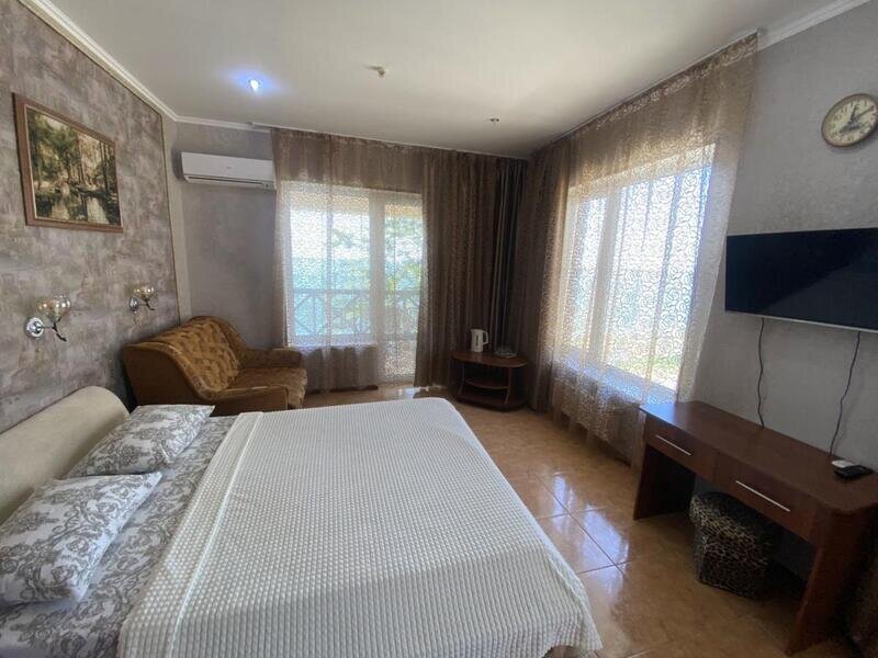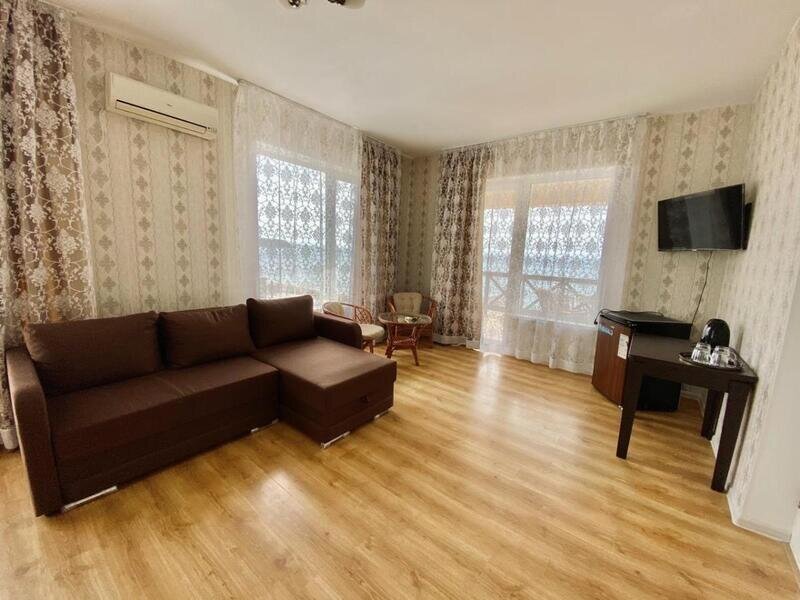 Семейный отдыхДостоинстваУ нас был замечательный номер-люкс с видом на море. Без изысков, но уютно, чисто. На балконе есть стол со стульями для чаепития. На территории высажены клумбы, все в зелени. Вкусно готовят повара, спасибо им. Маленьких деток кормят бесплатно. Недалеко до моря, магазины в пешей доступности, детские развлечения.