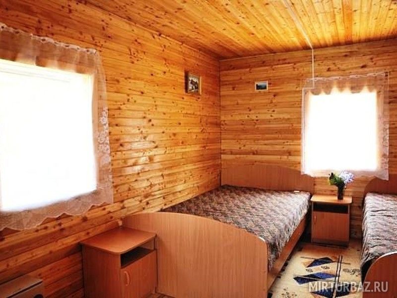 К проживанию предлагаются деревянные 2-х этажные дома с 2-х местными номерами. Две комнаты на первом этаже, одна на втором. В комнатах одна кровать 1.5 спальная, вторая односпальная, ортопедические матрацы. Умывальники, печное отопление, свет (генератор). Удобные при каждой комнате отдельные теплые биотуалеты.