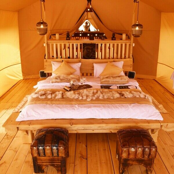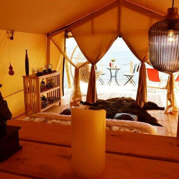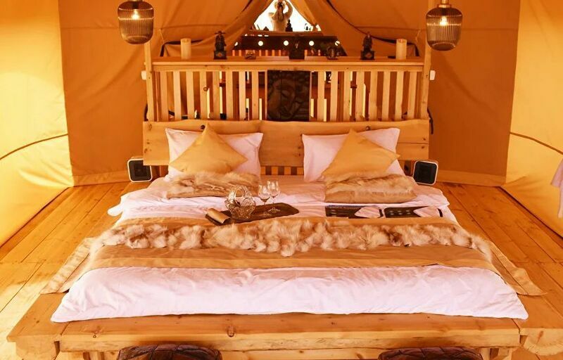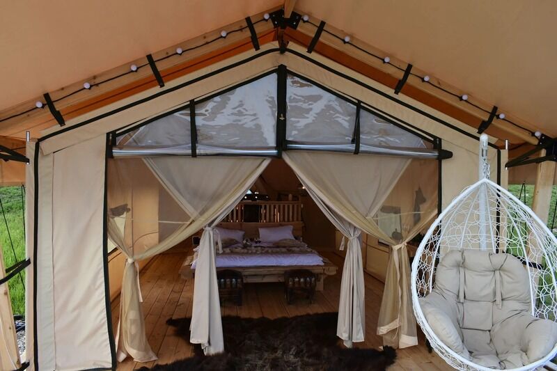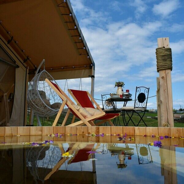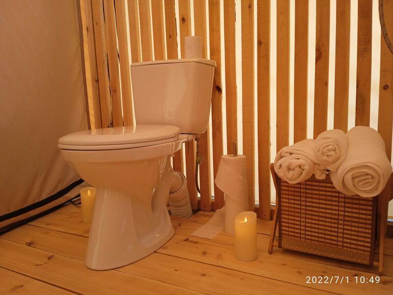Насладитесь прекрасным видом с приватной террасы вашей 44 м2 палатки в глэмпинге «Без паники, мой капитан!». Палатки оснащены собственными ванными комнатами с душевыми кабинами, туалетом и горячей водой. Электроснабжение бесперебойное. На территории глэмпинга есть Wi-fi.
