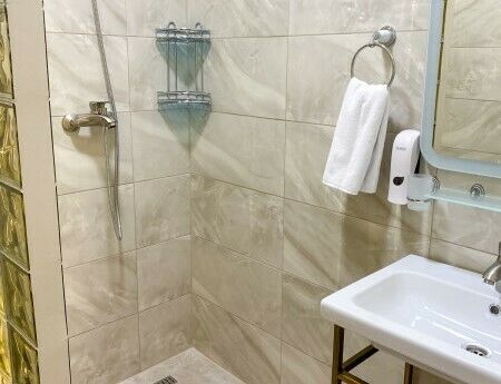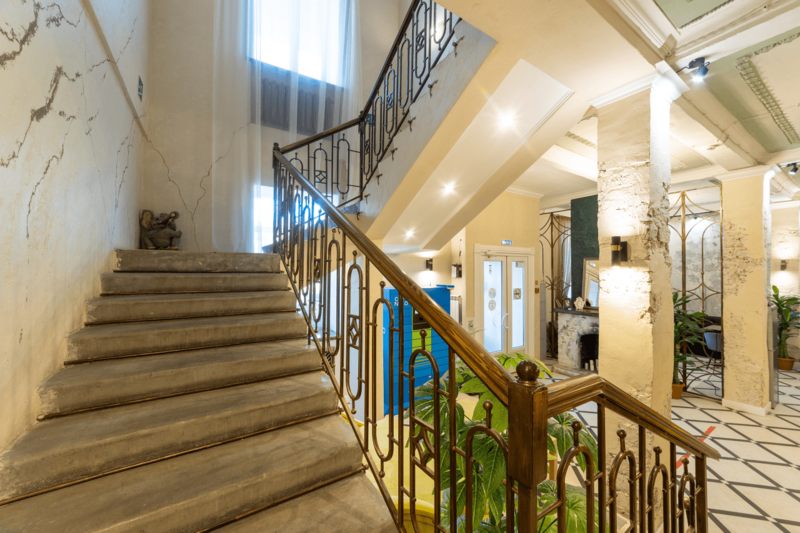 На первом этаже в распоряжении отдыхающих уютное лобби, также среди услуг — беспроводной интернет и охраняемая парковка.