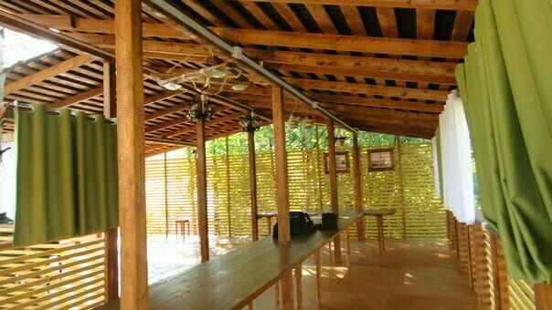 В каждом номере кровати,диваны,кресла,шкафы,столы,стулья.телевизор,микроволновые печи,электрочайник,раковина.Туалет на улице. В доме прекрасно оборудованная кухня.