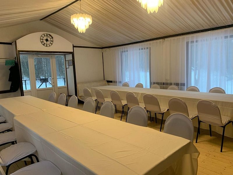 Банкетный зал на берегу реки, в классическом стиле, вмещает до тридцати человек. Это идеальное место для свадеб, тренингов, корпоративных выездов и других камерных мероприятий.