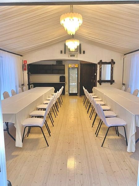 Уютный банкетный зал на берегу реки, идеально подходящий для камерных мероприятий до тридцати человек. Просторное помещение оборудовано кухонной зоной, комфортной мебелью, холодильником, термопотом и микроволновой печью, а также предлагает санузел и гардероб.