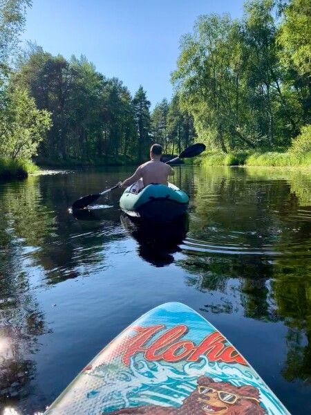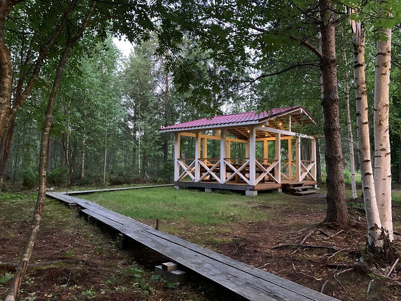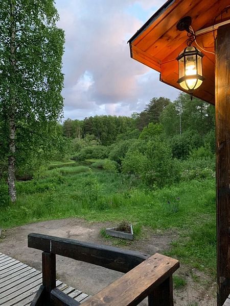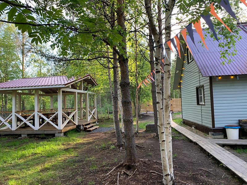 В свободное время вы можете посетить сеанс бани, прогуляться по лесным тропинкам, съездить на дикий пляж Белого моря в двадцати минутах от домика или посетить урочище Куртяево.