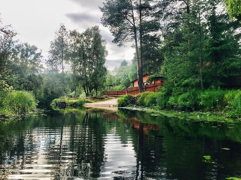 Коттедж «Русская усадьба» — это большой шестикомнатный уютный дом из круглого бревна, который расположен на базе отдыха в лесной чаще, вдоль которой протекает река.