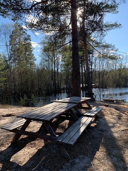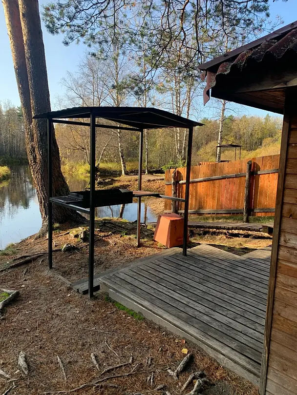 На берегу реки расположена баня, способная разместить до шести человек. Уютная зона для отдыха с столом и лавками создает идеальные условия для приятных встреч с друзьями и близкими. В непосредственной близости находится мангал под навесом, который порадует возможностью приготовить аппетитные блюда на открытом огне.