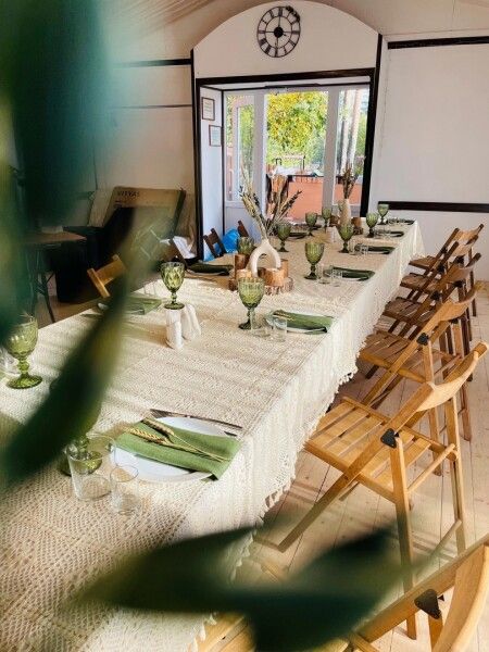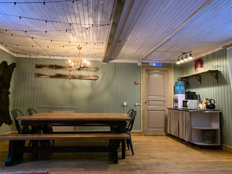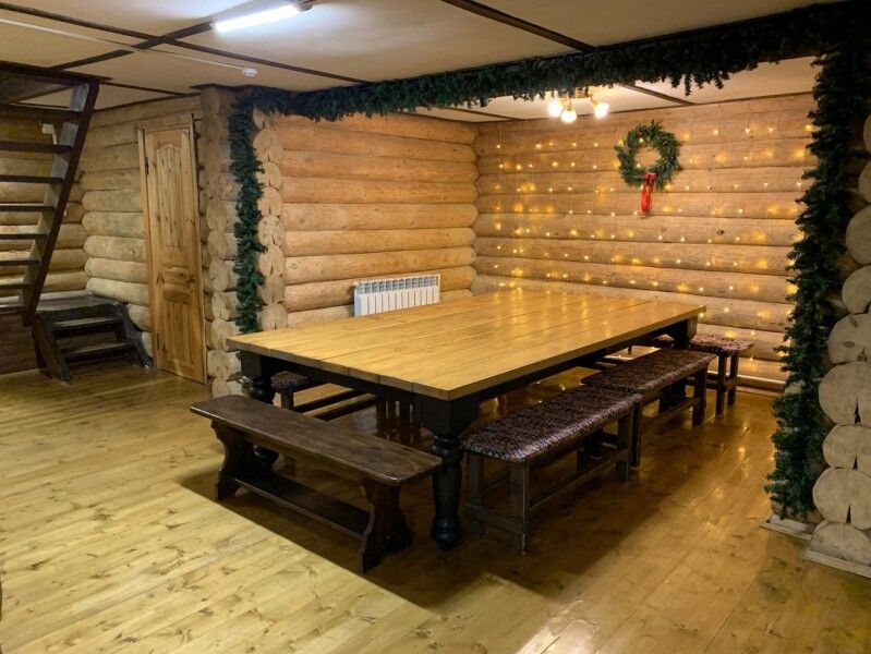 Дом подходит для празднования небольших камерных свадеб, корпоративов, встречи друзей, семейных вечеров и другого типа мероприятий до двадцати человек. Вмещает двадцать гостей за столом, четырнадцать спальных мест в отдельных комнатах.