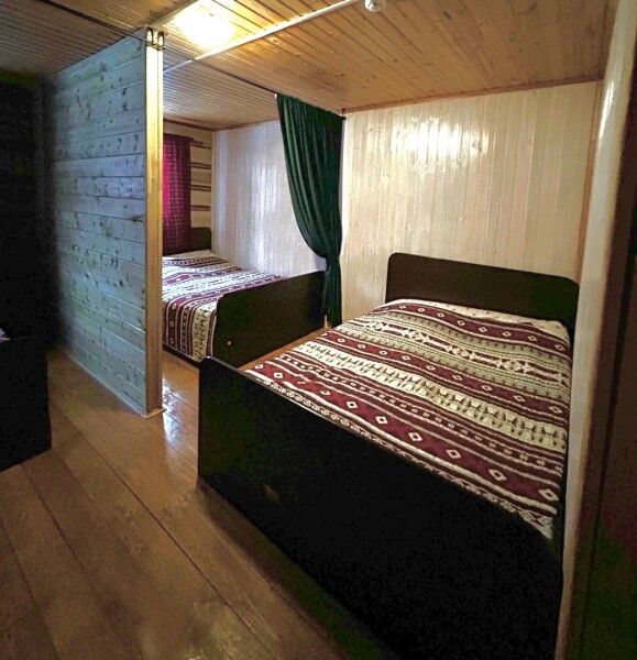 Второй этаж: спальня на шесть разделенных между собой спальных мест (две двуспальные, две односпальные кровати) и лаунж-зона. Предоставляется чистое постельное белье по количеству человек. Комфортное размещение в нашем уютном домике, от двух до четырех взрослых, остальное дети (не более шести человек).