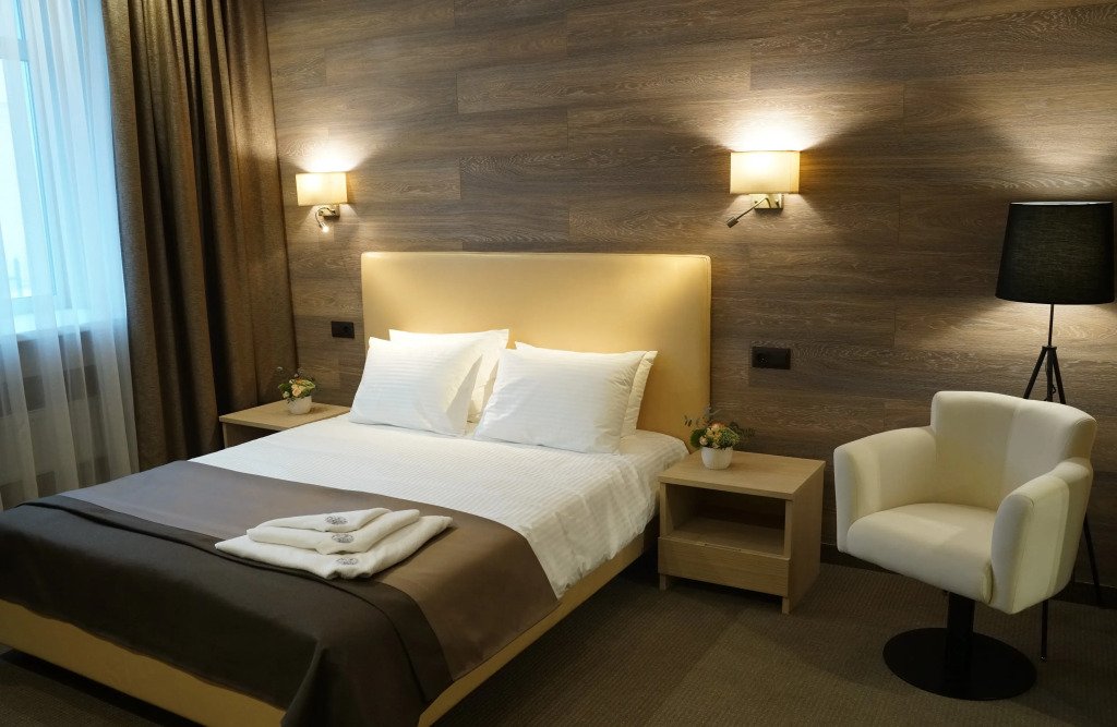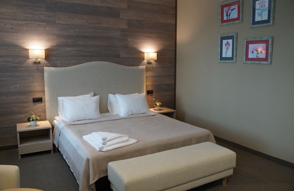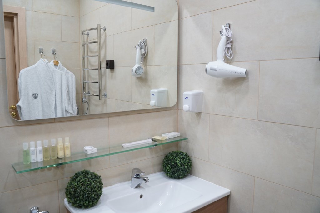Номер уютно обставлен и оснащён необходимым, чтобы отдохнуть после долгого и насыщенного дня. Имеются телевизор, мини-бар и халат. Перечисленные услуги есть не во всех номерах.