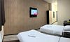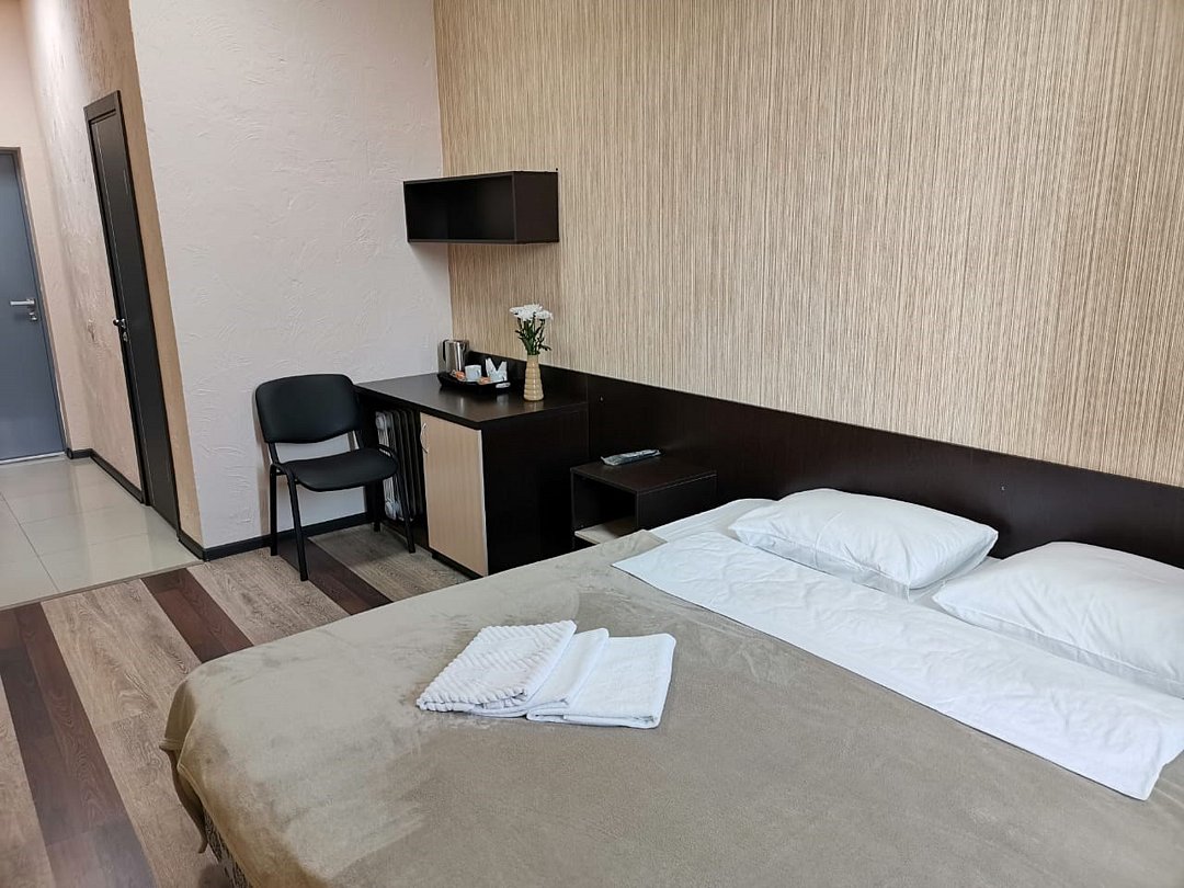 Wi-Fi, душевая кабина, тапочки, две односпальные кровати, тумбы, шкаф для одежды, зеркало, чайник, унитаз, вид на город, кулер на этаже, стаканы, стол, туалетные средства, туалет, телевизор с плоским экраном, номер для некурящихВ номере