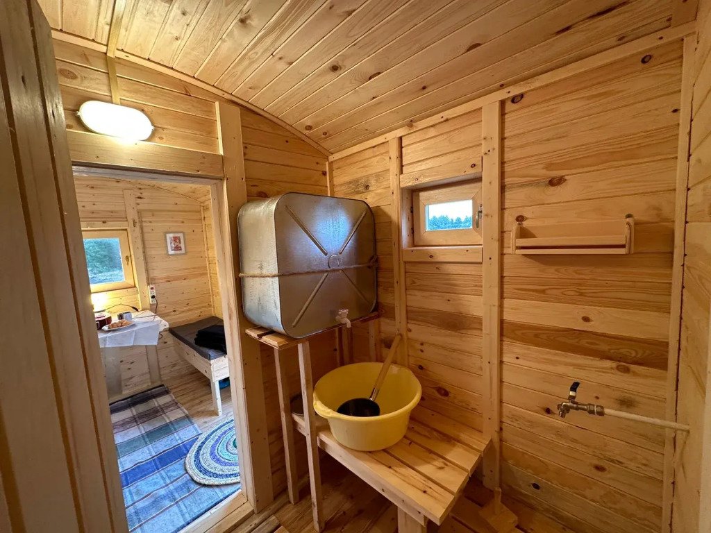 Особой изюминкой глэмпинга стала традиционная русская баня, способная принять до восьми человек. После парной гости окунаются в горячий чан под открытым небом, наслаждаясь видом на горы и расслабляясь после насыщенного дня. В комнате отдыха их ждут мед и травяной чай — маленькие радости, которые делают пребывание здесь по-настоящему запоминающимся.