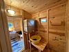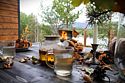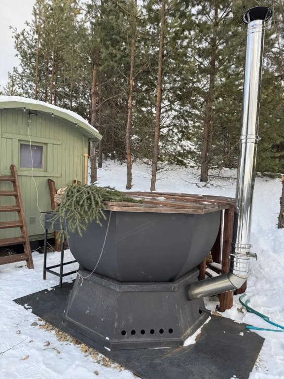 Возле русской бани расположен горячий чан, открывающий завораживающий вид на горы. Чан, доступный для бронирования только в паре с баней, предлагает идеальные условия для полного расслабления и восстановления, погружая в атмосферу гармонии и умиротворения.
