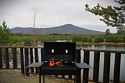 На террасе также имеется стол и скамейка. Около домика расположен мангал.