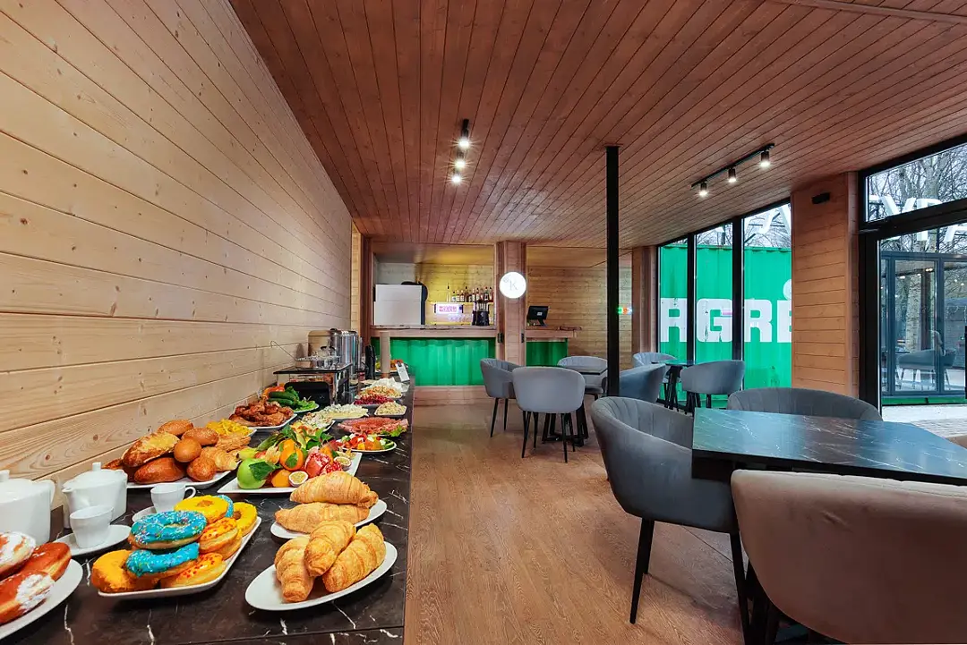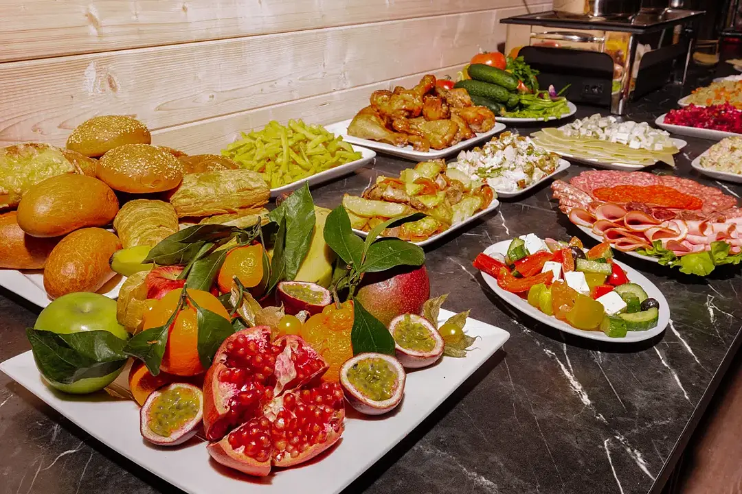 Для всех гостей клуба организовано трехразовое и промежуточное питание на шведском столе по системе «Все включено», включая пиво и вино.